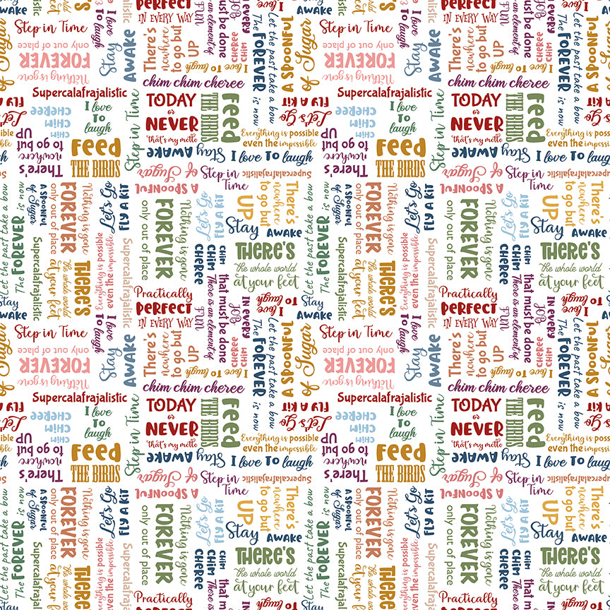 A Spoonful of Sugar by Jennifer Long of Sew A Story for Riley Blake Designs is great for quilting, apparel and home decor. This text print features phrases from Mary Poppins.